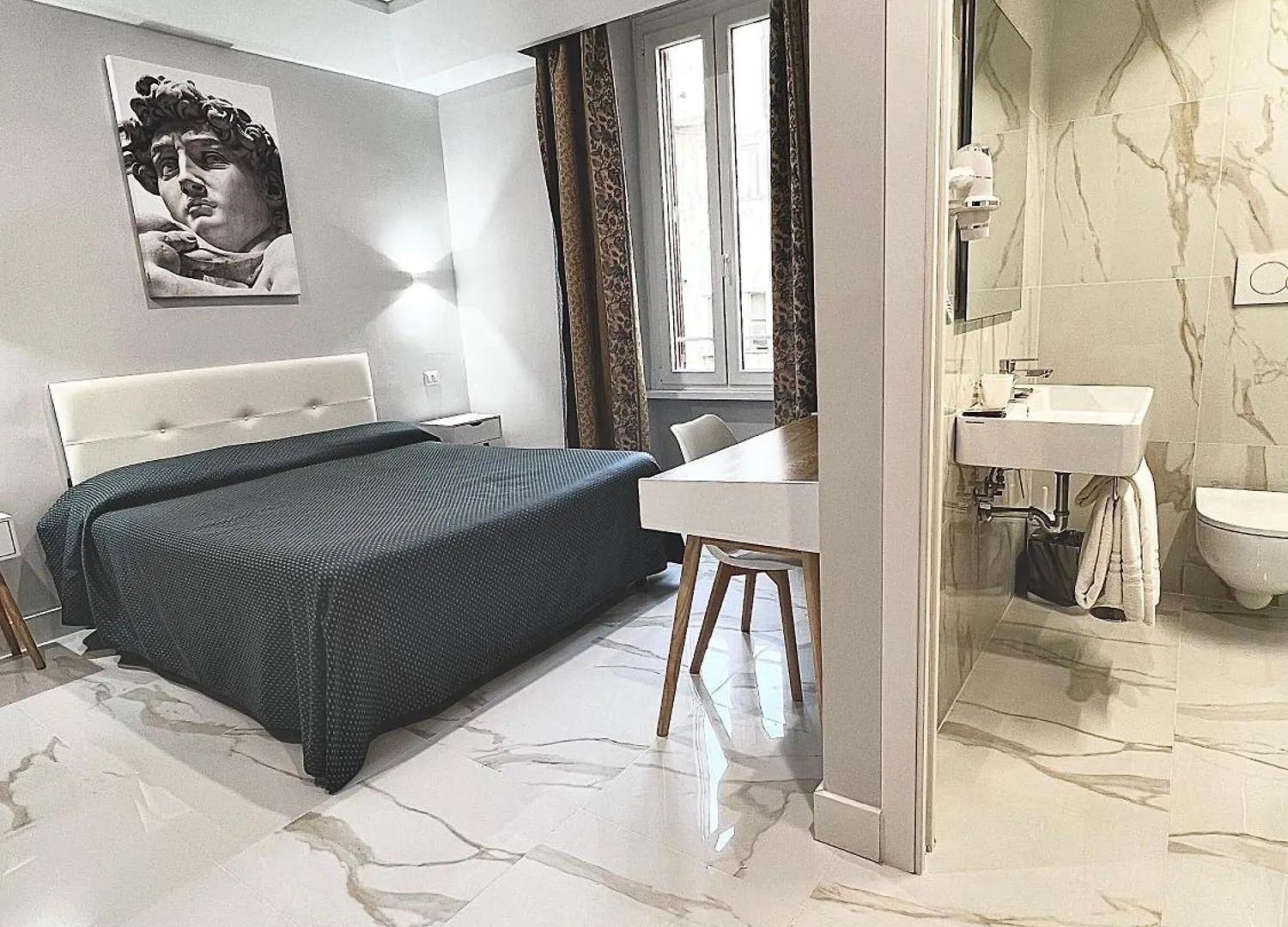 Отличное расположение, недалеко от Пьяцца Венеция. Были как очень удобные кровати, так и телевизор с плоским экраном и спутниковыми каналами, холодильник, рабочий стол. Здесь царила тихая атмосфера.